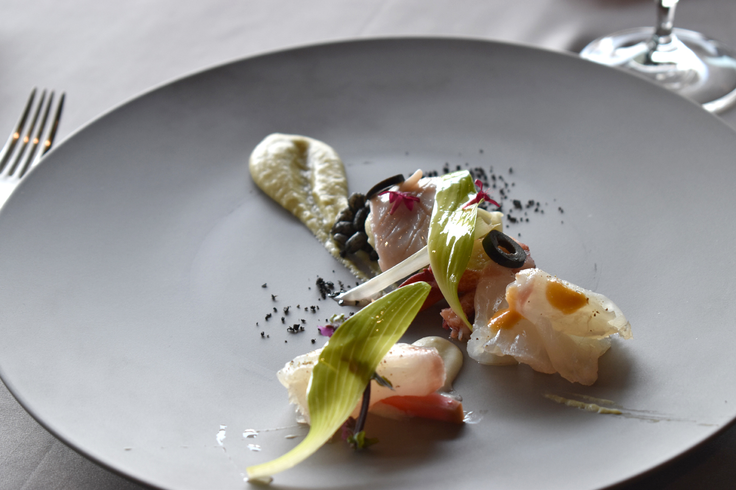 まさに非日常の世界。空間づくりに徹底してこだわり抜いているのがわかる。そしてこの日いただいたランチも、好奇心をそそられる器や、意趣を凝らした美しい盛り付けなど、目にも楽しい料理の数々が並ぶ。店内の空間作り同様、料理の演出にも徹底したこだわりを感じる。