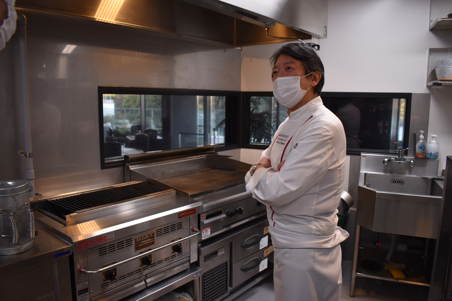 「厨房のレイアウトには苦労しました。建物自体が難しい形をしているので、厨房も壁が斜めだったり、中央に柱があったりします。今のレイアウトはこの条件の中でようやく実現できたベストなレイアウトだと思います」