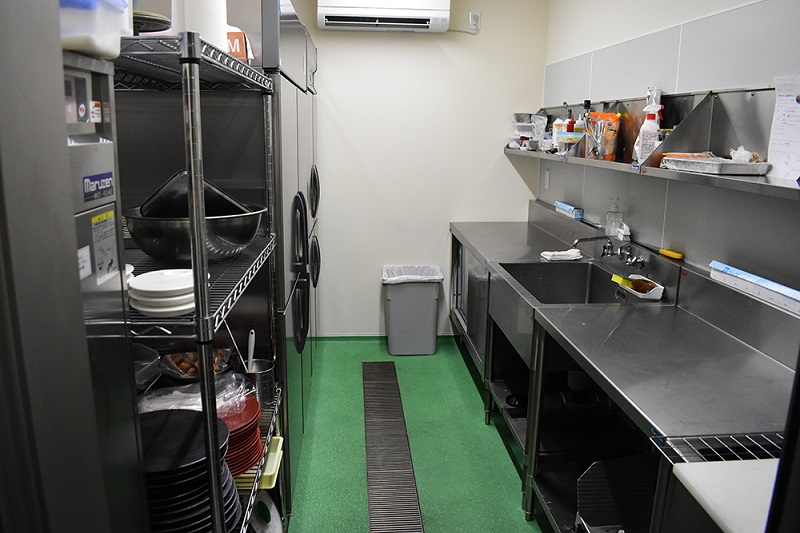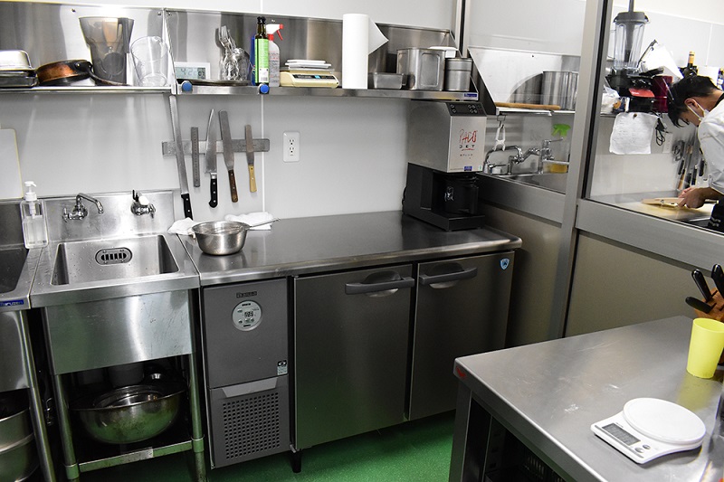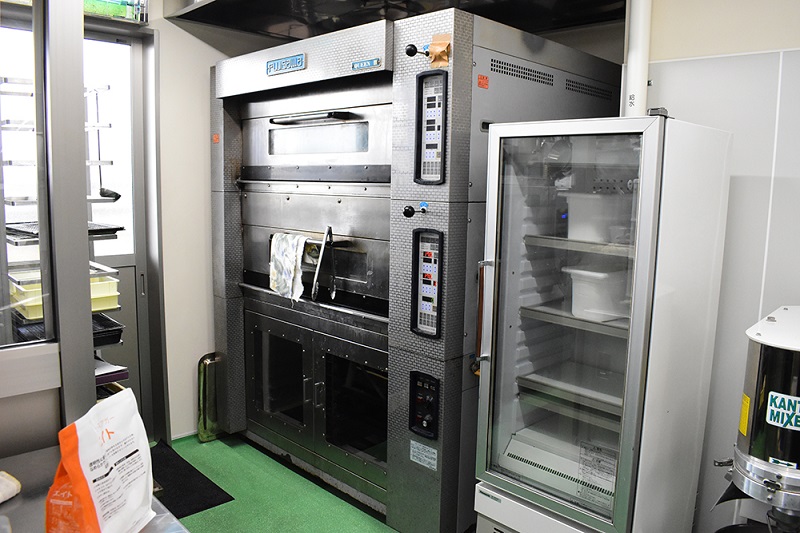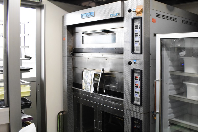 火の元エリアのすぐ隣には当社製プリンスデッキオーブンのほか、ミキサーやパコジェットなどが設置されているコーナーがある。
