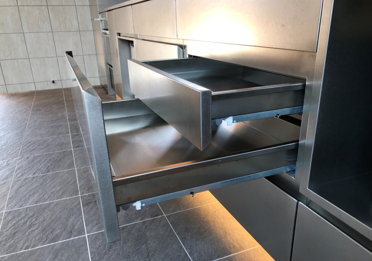オールステンレス、フルオーダーの特注キッチン。デザインから施工までかなりの手間暇がかかっている。