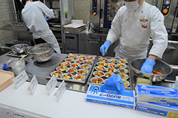 桜を使ったメニュー等季節感も取り入れた実演を行いました。