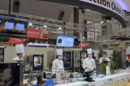 スチームコンベクションオーブン実演コーナーでは、各業種に向けた内容でプレゼンテーションを行わせていただきました。レシピは非接触を意識しQRコードにて掲示し、お客様にダウンロードしていただきました。