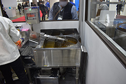 上記3つの実演に加えて今回は特別企画としてIHロータリー式自動フライヤーを用いてのから揚げ実演を行いました。