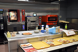 また、展示即売会では、毎回機器の調理実演を行っております。今回は1Fにて電気ピッツァ窯やベーカリーコンベクションオーブン等を用いての実演と美味しいご試食提供を行っております!