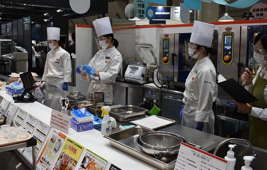 スチコン実演コーナーでは、病院や福祉等に向けたメニューのご紹介を各日4回行いました。芯温延長機能やマルチタイマー機能等の説明を交え「スーパースチーム」の魅力的な機能についてもご紹介いたしました。