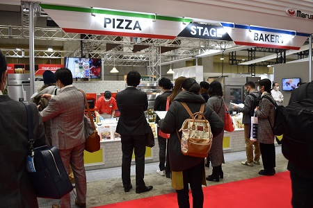 電気ピッツァ窯「カリノ」で焼き立てのピッツァを皆様にご提供いたします。ステージ前には100V仕様を参考展示いたします。