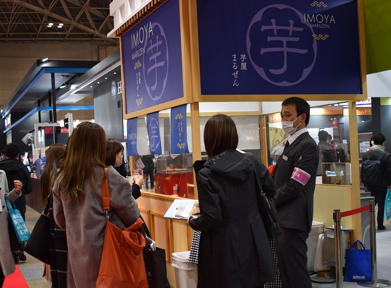 「芋屋」では、参考出展の電気芋焼き器とIHロータリー式自動フライヤーを用いて焼き芋とさつまいもスティックのご提供を行いました。