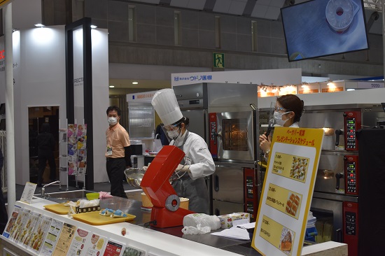 ベーカリー実演コーナーでは「ベーカーシェフシリーズ」を用いて、省スペースで作れるパンとケーキの焼成実演を各日3回行いました。