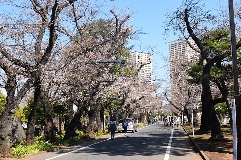 圧巻です。 前回は蕾が多少残っておりましたが、本日はご覧のようにほぼ全ての蕾が開花している満開の状態でした。桜を見物に立ち寄る方も前回よりも多く、外国人観光客の方もカメラ片手に散策しておりました。 さて、次は線路を挟んで反対側の谷中霊園へ向かいます。