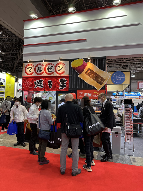 「芋屋」では、参考出品の電気芋焼器据置タイプとIHフライヤー低油量タイプを使用して、ご来場の皆様に大学芋と焼き芋をお配りいたしました。