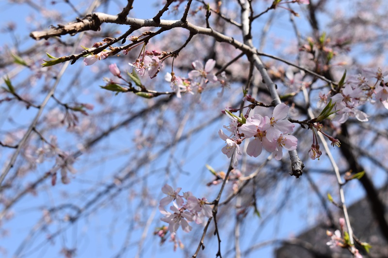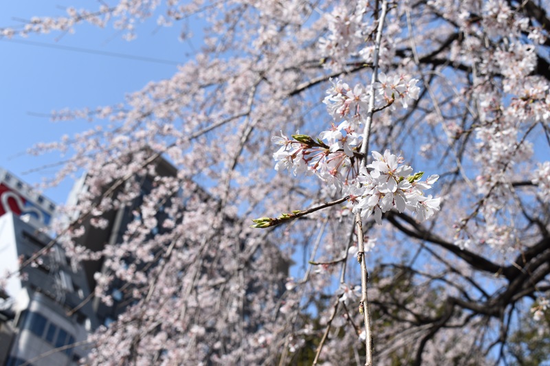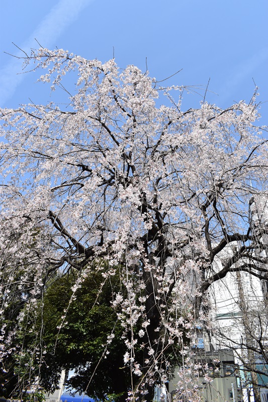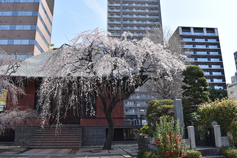 皆さまこんにちは。 さて、毎年恒例ではございますが、マルゼン本社ビル周辺の桜を巡ってまいりました。 駅前の通りからも山門越しに見られる本堂前の枝垂れ桜。五分咲き程でしたが、それでも圧巻の美しさでした。 週末には美しい満開姿が見られそうです。 境内南西側にも立派な枝垂れ桜。日当たり良好でこちらも美しく咲いております。