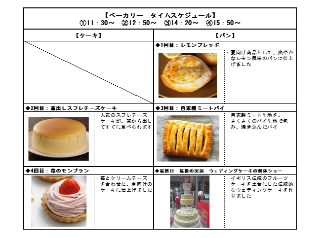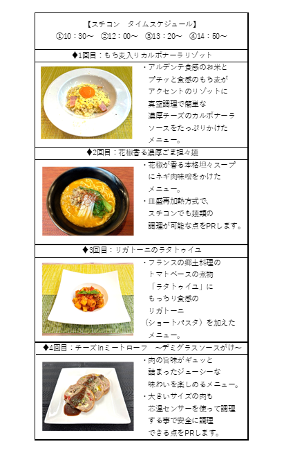 実演時間やメニューは以下の通りです。
