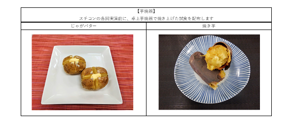 当社の電気卓上芋焼器で焼き上げた、「じゃがバター」と「焼き芋」のご試食を配布いたします。