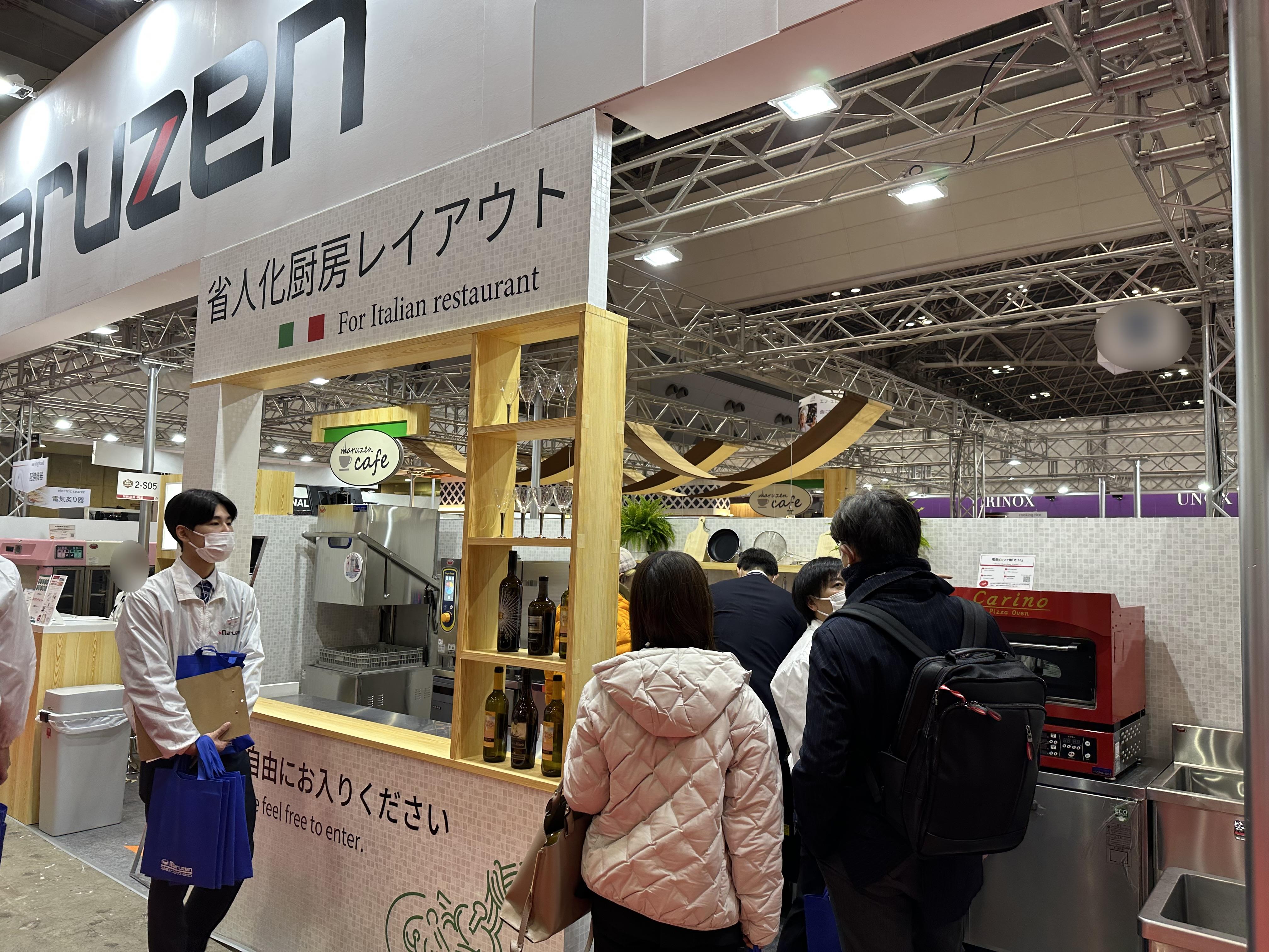 特設の省人化厨房コーナーでは弊社の省人化に特化した機器をラインアップし、皆様に見て、触れていただきました。