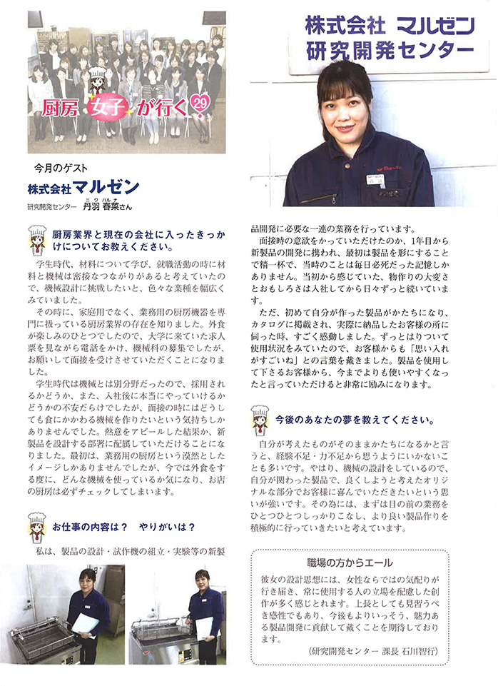 | サービスエンジニア | 厨房機器の保守・メンテナンス・カスタマーサポート |