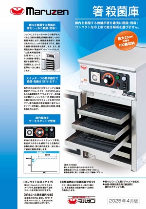 箸 殺菌庫 ・庫内を循環する熱風が箸をしっかり殺菌、消毒! ・スイッチ一つの簡単操作で殺菌、乾燥まで行います ・庫内温度をサーモスタット管理 ・コンパクトな卓上タイプ ・異常過熱防止装置搭載で安全 |