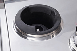 釜枠と天板は一体で美しい仕上り。堅牢で清掃性に優れています。また、すき間から食物の残滓などが落ちることもなく衛生的です。