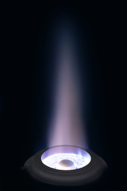 高温集中加熱で鍋中心より力強く熱する高効率なバーナーです。中心に強火力が集中するためイタメ調理に最適。広東料理や大鍋での大量調理に適しています。また、炎を小さく絞るとろ火調理にも適しています。
