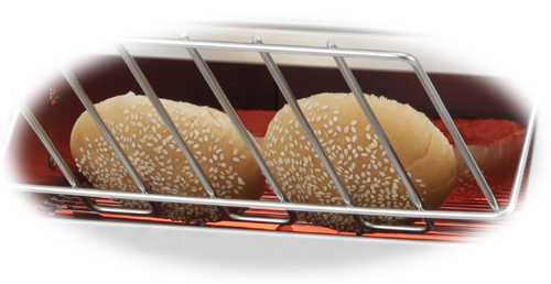 コンベアの速度とヒーター出力は調整が可能なため、食パンはもちろん、ハンバーガーのバンズ、ベーグルなどをトーストできます。 |