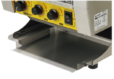 上部より投入されたパンがトーストされ、手前下部より出てくるので簡単にパンを取り出せます。またコンベア式を採用し、追加注文も待たずにパンを投入できます。ビュッフェ等のセルフサービスや、小規模店舗での少人数オペレーションに最適です。 本体寸法もコンパクトで省スペース。わずかなスペースで設置できます。 |