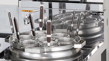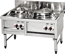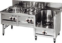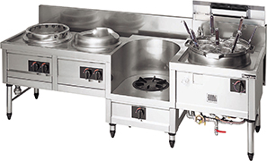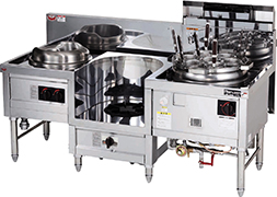 強火力と省エネで定評ある、ファイヤースクリーンバーナー搭載。イタメ、ギョーザ、スープ、ソバ、ゆで麺の組み合わせで、4口~1口タイプまで揃った豊富なラインアップです。