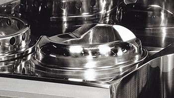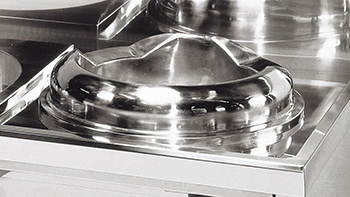釜枠はSUS3O4ステンレス特殊絞り。内向きファイヤースクリーンバーナー採用で、炎が鍋底を這うように燃焼するので効率良く麺をゆで上げます。釜枠内部にはセラミックファイバーを使用して断熱効果を高めています。