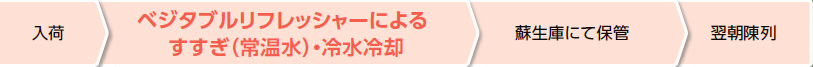野菜を冷水冷却することで、鮮度が大幅に長持ちするとともに見た目もみずみずしくリフレッシュ!商品の価値を高め、廃棄の削減にもつながります。