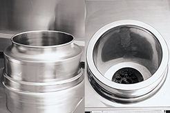 イタメ釜は切り欠きがなく鍋底との密着度が高い密閉式で、最大火力使用時でも炎にあおられず、自在に鍋を操っていただけます。φ330mm、360mm、390mmの3種類をラインアップ。(後ろ排水の機種はφ330mmのみとなります)