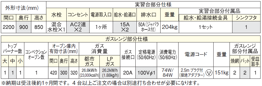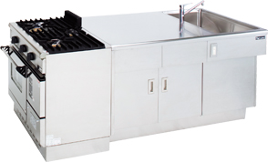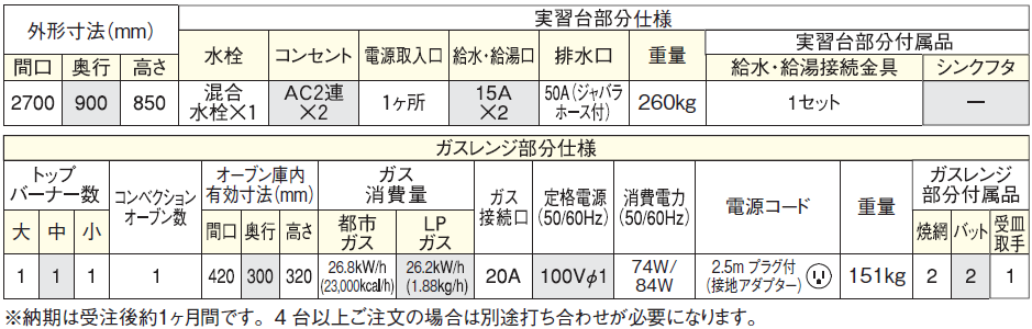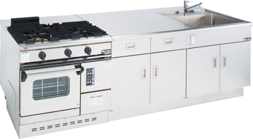 - ガスレンジは業務用の品質をそのまま組み込んだ、耐久性・機能性に優れたマルゼンならではの仕様。高火力のトップバーナーと、立ち上がりと調理時間の早さが自慢のコンベクションオーブンが幅広い料理に対応します。