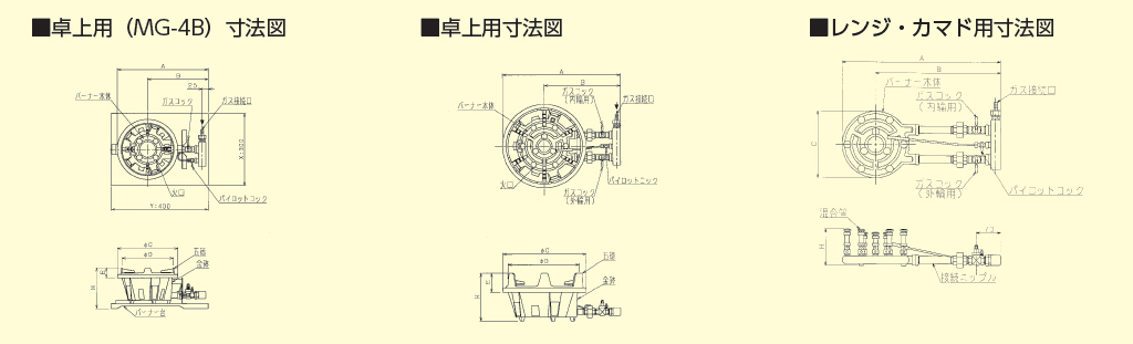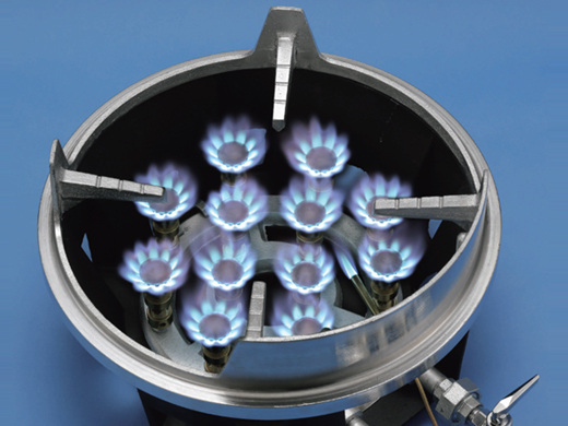 <ジャンボ>タイプは17.4kW(15,000kcal/h)と23.3kW(20,000kcal/h)の2機種あり、中華料理や麺ゆでなど、スピーディな調理に最適な強火力専用の高出力バーナーです。