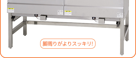 複数台を隣接して使用する場合に、脚周りをよりスッキリとさせて清掃性に優れる架台セット仕様もございます。