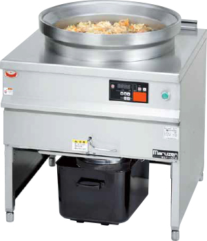 近年、外食産業で注目を浴びる「魅せる厨房」。調理作業をお客様に見せることで臨場感を生み出し、”できたて感”、”つくりたて感”を大きくアピールすることができる厨房のトレンドスタイルです。マルゼンのIH丸型フライヤーは油槽形状を丸型とし、釜の輪郭を大きくアピールした仕様です。カウンター越しにお客様の目の前に設置すれば、まるで大きな専用鍋で調理しているかのような演出効果を生み出し、”できたて感”、”つくりたて感”を大いにアピールできます。まさに”魅せる厨房”に最適なフライヤーといえます。