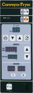 メニューにあわせて、マイコンが油温と揚げ時間、コンベアスピードをコントロール。油温は60℃~220℃まで1℃刻みで設定でき、リアルタイムで油温を表示します。揚げ時間は2分~15分まで調節できます。