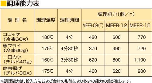 定番メニューなど30メニューが登録可能。メニューにあわせてマイコン制御で油温、揚げ時間など正確に調理できるのでマニュアル化がはかれ、省力化に貢献します。