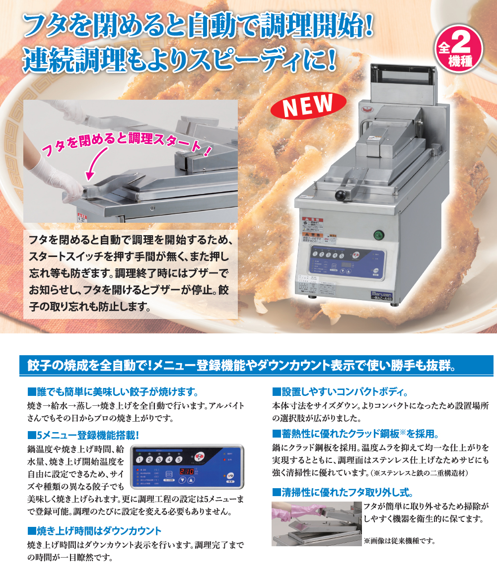 ⇒ガス自動餃子焼器 自動スタート仕様 仕様・価格