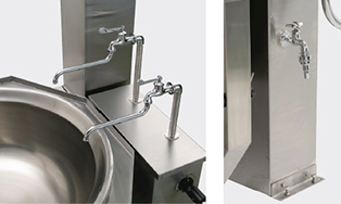 本体に給湯カラン、給水カラン、そして清掃用カランを標準装備しています。設置時の配管接続が簡単なうえ、設置場所の選択肢も広がります。 |