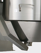 重量のある釜を回転させるギア部をボックス脚内部に収納しました。回転時に手を挟む危険がありません。 |