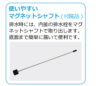 内釜洗浄水は排水ハンドルを回せば釜底から排水できます。日常のお手入れが容易になります。 |