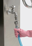 | 清掃用カランはカプラー式でホースの着脱が簡単。 |
