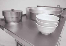 丼の湯せんなどに利用できる湯せんポット付き(MES-DL)。釜手前には盛り付け用のスペースを充分にとってあり、スピ ーディな提供が可能です。