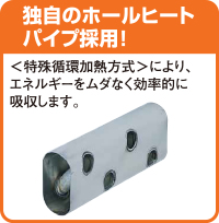 - マルゼン独自のホールヒートパイプを採用。熱効率60%を実現した省工ネ構造で、抜群の沸騰力を実現しました。