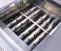 マルゼン独自のホールヒートパイプを採用した特殊循環加熱方式の採用で、沸騰力はバツグン。冷凍めんの連続投入でも湯温が下がらず一気にゆで上げます。