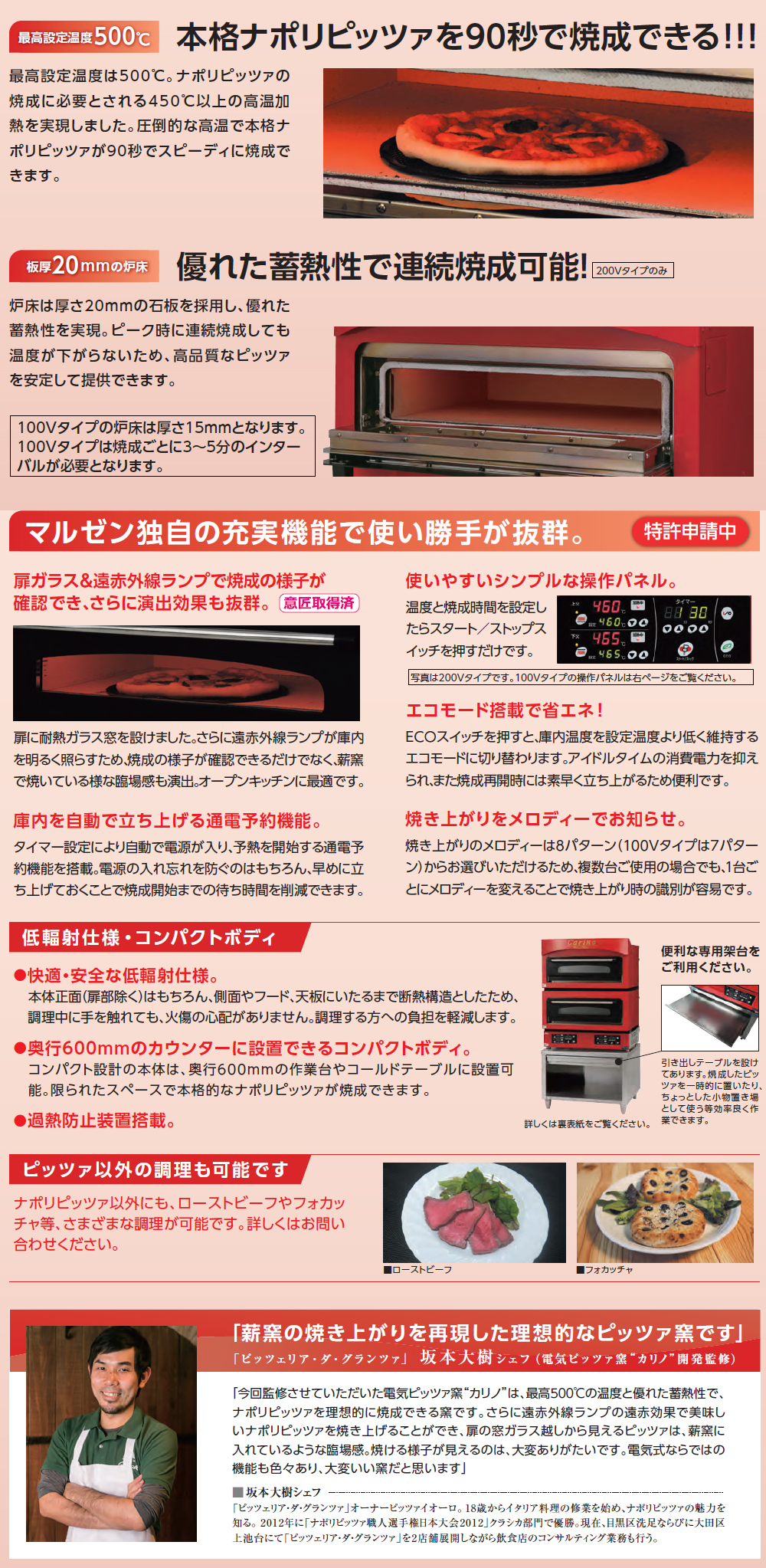 ⇒電気ピッツァ窯"カリノ" 100Vタイプ 仕様・価格