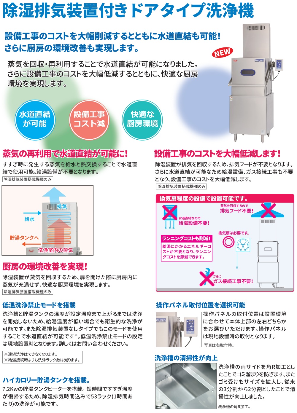 ⇒除湿排気装置付きドアタイプ洗浄機 仕様・価格