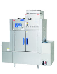 除湿排気装置の排熱利用により、本体から排出される熱気温度を大幅に低減し快適な作業環境を実現するとともに、空調コストや給湯設備費を削減。さらに仕上げすすぎ水の再利用による使用水量の削減で、洗浄にかかわるランニングコストを約50%にまで大幅カット!厨房の環境改善とコスト削減を実現するコンベア洗浄機です。