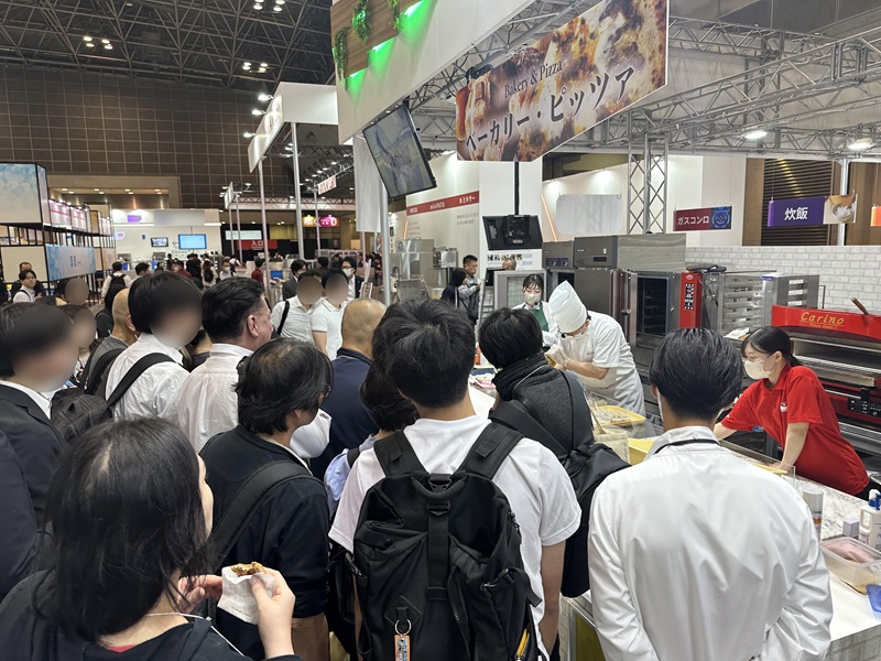 ピッツァ実演では、電気ピッツァ窯カリノの2枚焼きタイプを用いて、90秒という短時間で本格ナポリピッツァを焼成しました。
