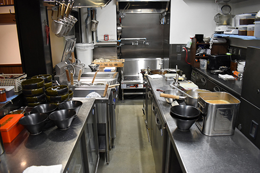 「まったく問題ありません。昔のIHというと、どうしても火力が弱いイメージがありましたが、マルゼンさんのIHラーメン釜はガスと比べても遜色のない火力なので非常に満足しています。槽内がフラットで掃除もしやく、清潔に保てるのも良いですね」 同店はスープレンジもIH式である。