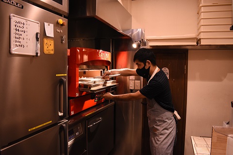 「通販事業を立ち上げようと思ったときに、"カリノ"の導入が真っ先に浮かびました。なぜなら現状使っている薪窯で通販用のピッツァも焼成するとイートインのオーダーとバッティングしてしまう、かといって薪窯の増設は大がかりだしコストもかかります。しかし"カリノ"なら電気式だから導入しやすいし、自分で監修したから性能もわかっている。もう選択肢は"カリノ"一択でした」