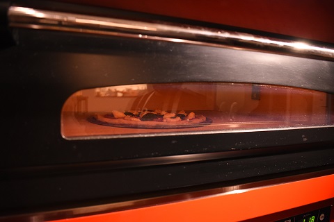 「とにかく焼きやすいです。薪窯の場合、放っておけるのは最初の2~30秒だけで、それ以降は小まめに生地をいじらないと綺麗に焼けません。しかしカリノは放っておいても綺麗に焼けるので、焼成の1分半の間に次の工程の準備ができたりと作業効率があがります。それに扉のガラス窓から焼成の様子が確認できるので安心できますね」