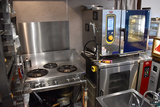 幅広いメニュー構成を考慮して導入したスチコン。火力に満足のガステーブル。